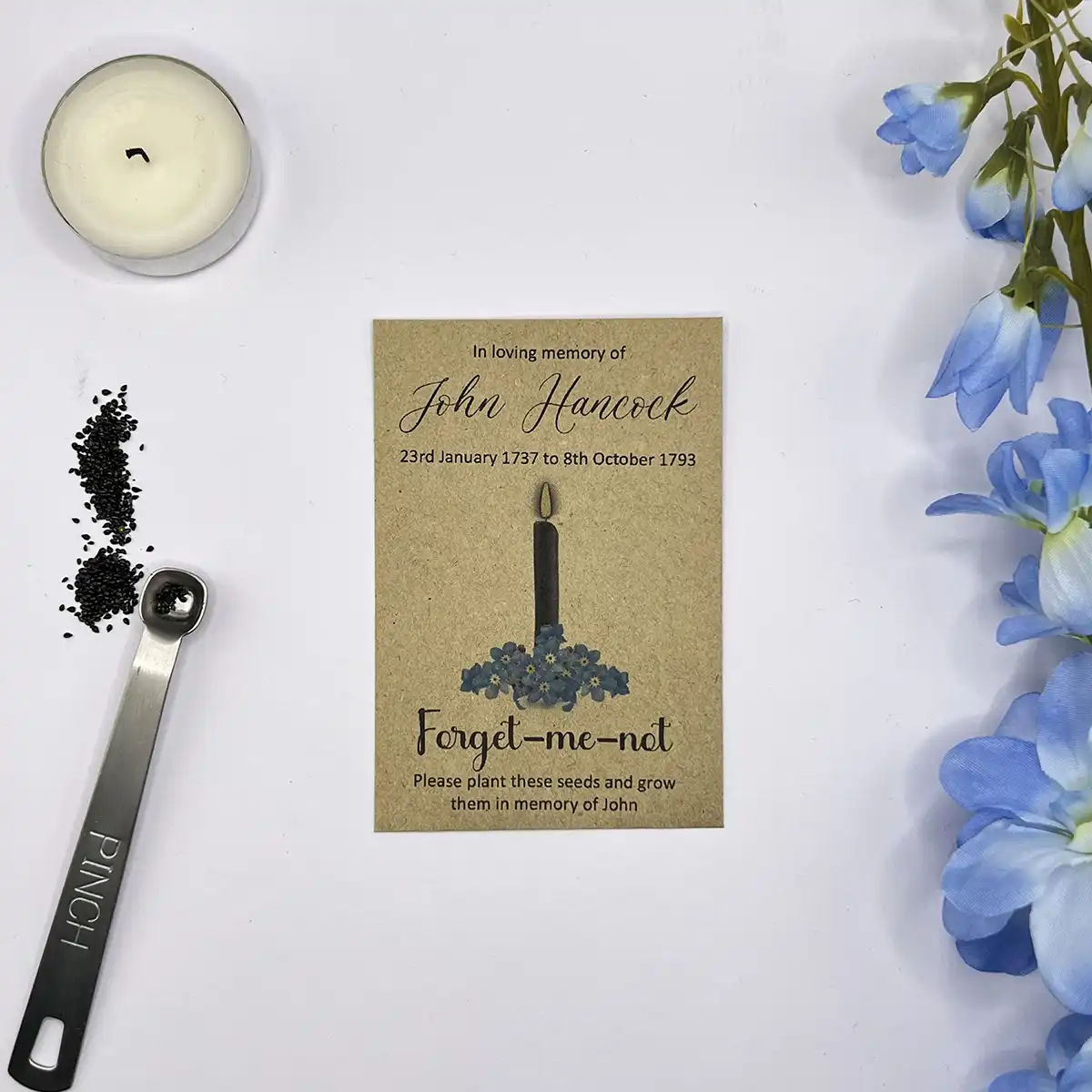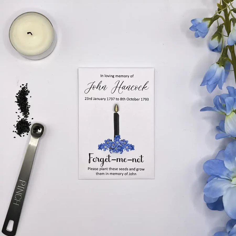 Forget Me Not Seed Packets – Candle & Floral Memorial Design