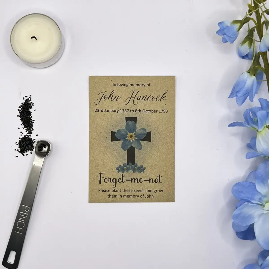 Forget Me Not Funeral Seed Packets – Cross & Floral Design