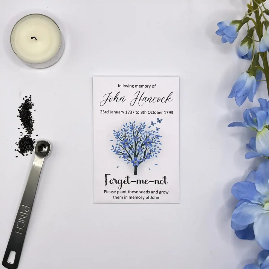 By gifting these Forget-Me-Not seeds, you are offering a long-lasting memento that will grow tall and vibrant, serving as a constant reminder of a life well-lived.