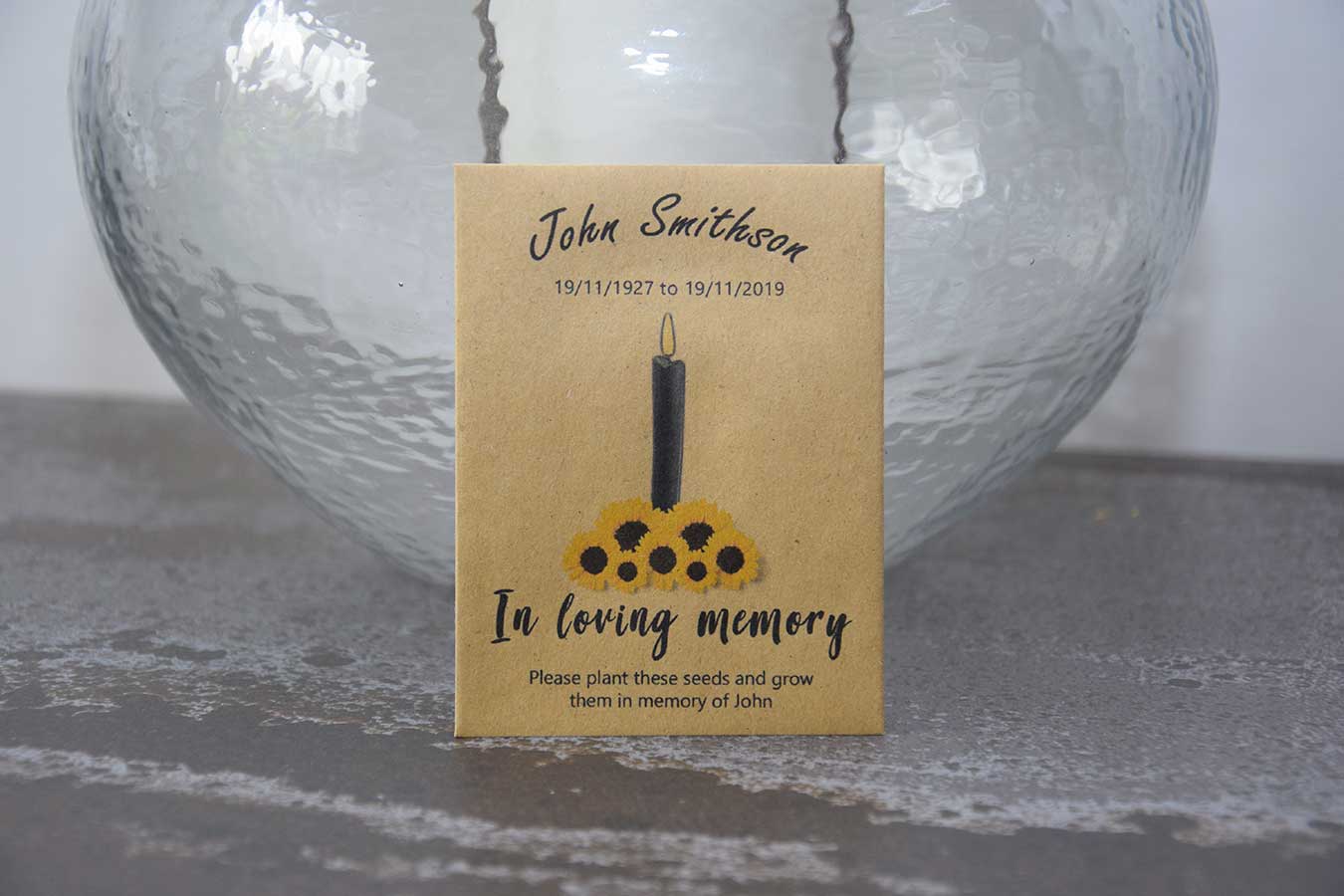 Sunflower Memorial Seed Packets – Candle & Sunflowers Design