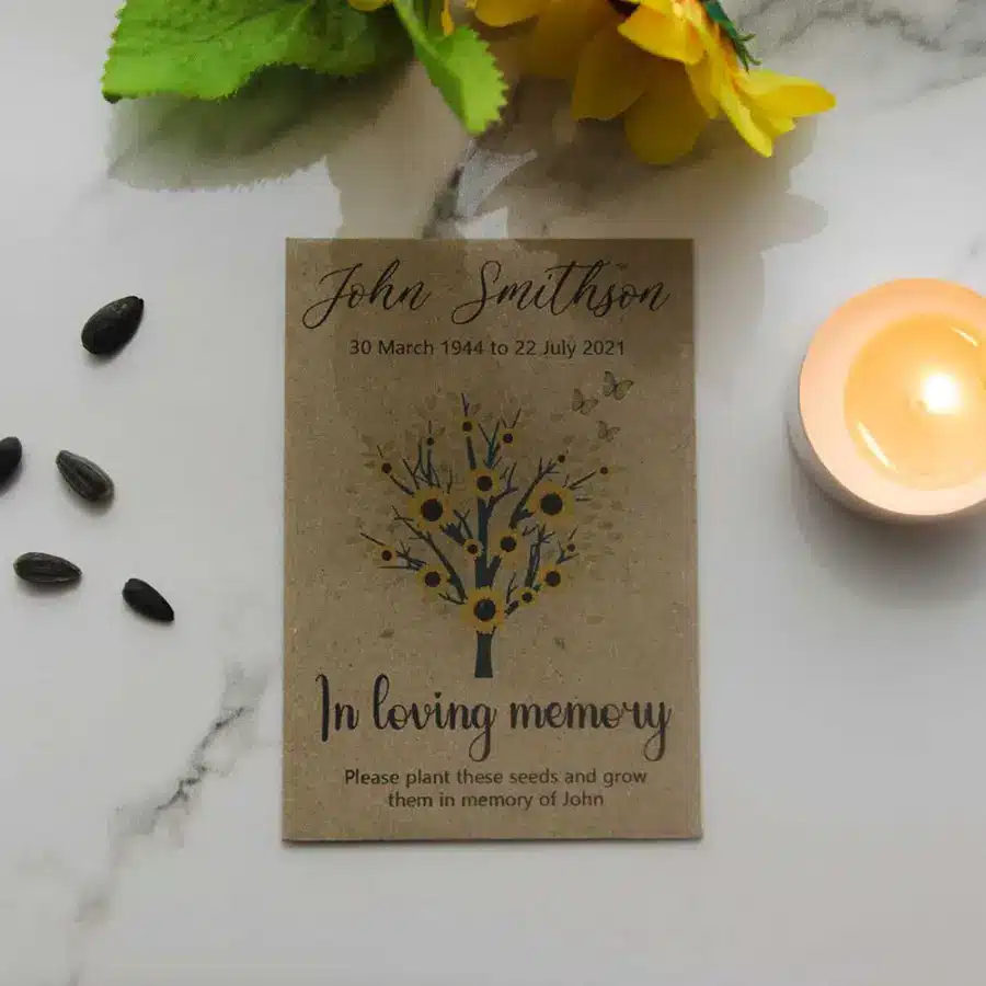 These seeds are incredibly easy to grow, making them a wonderful gift for guests of all ages to plant in memory of a special person.