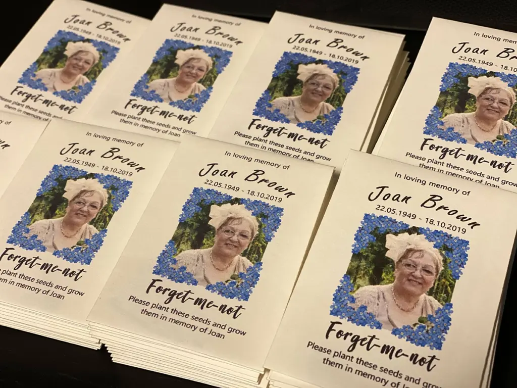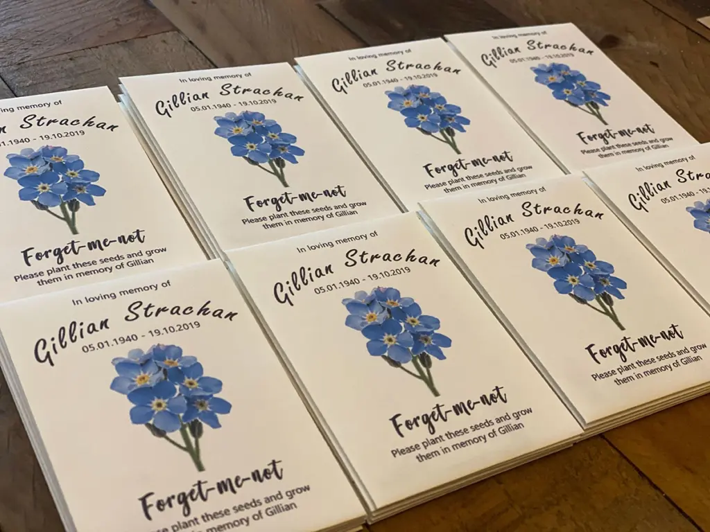 An increasingly popular, and rather beautiful and poignant trend is to provide everyone attending the funeral with funeral seeds. These are given out at the end of the service with advice on how, when and where to plant them and are often forget-me-not seeds. These beautiful, tiny blue flowers provide a welcome cheerful sight in the springtime garden and will often come back year after year to perpetuate the memory of a lost loved one. Handed out in a personalised envelope which can show a favourite picture or poem of the loved one, funeral seeds are the ideal way to make a lasting tribute.